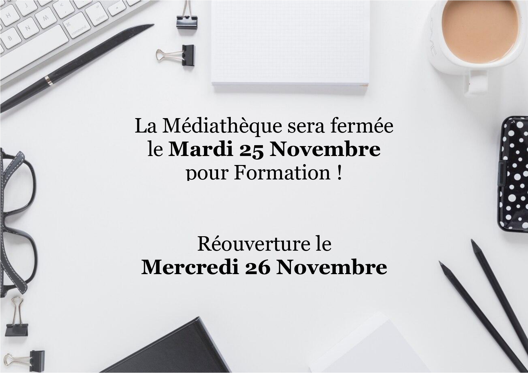 La médiathèque sera fermée le Mardi 25 Novembre pour Formation.