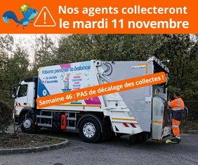 Pour rappel, les agents de la SMEEOM collectent désormais les jours fériés (à l’exception de Noël et du Jour de l’an). Les collectes seront donc bien assurées le mardi 11 novembre.