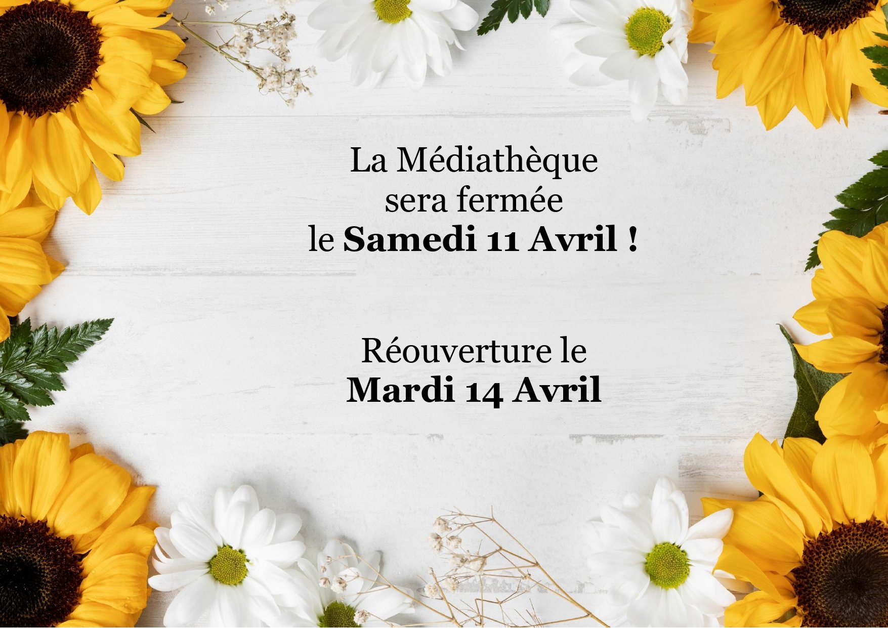 La Médiathèque sera fermée le Samedi 11 Avril.
